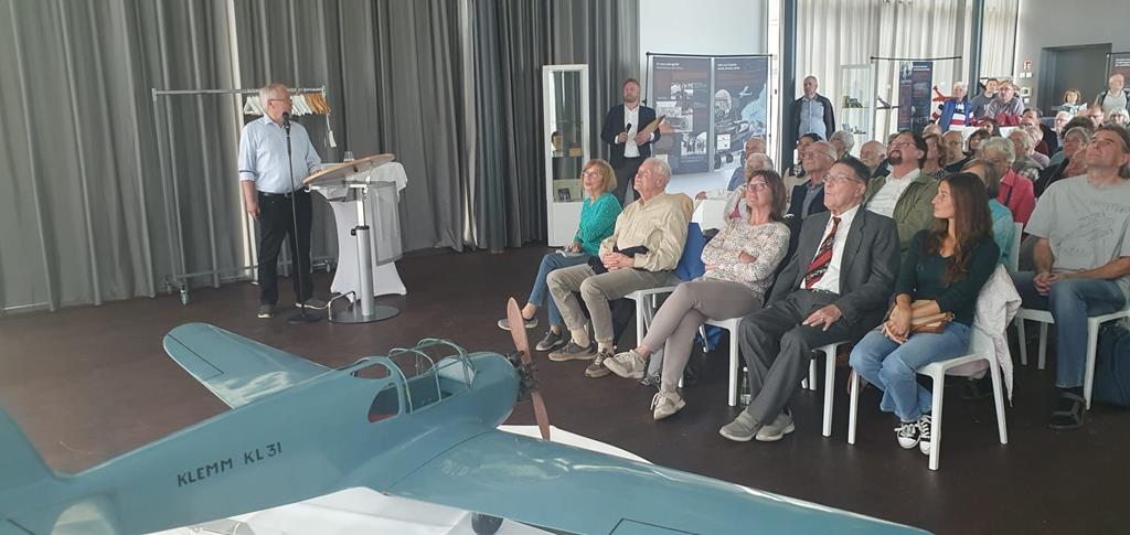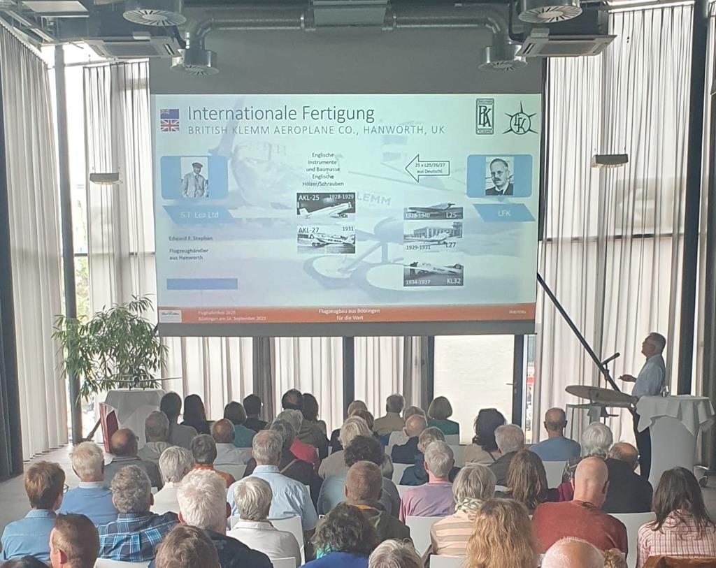 Am 14. September 2025 feierte die Fliegerstadt Böblingen 100 Jahre zivile Luftfahrt auf dem Flugfeld Böblingen/Sindelfingen. Im Rahmen des Geschichtssalons beteiligte sich Paul Zöller Luftfahrtarchive mit einem Vortrag "Flugzeugbau von Böblingen in die Welt". Eine schöne Gelegenheit für uns, um uns für die umfangreiche Unterstützung durch die Stadt Böblingen und Ihre Bürger bei den Recherchen zu unseren Klemm-Büchern zu bedanken.