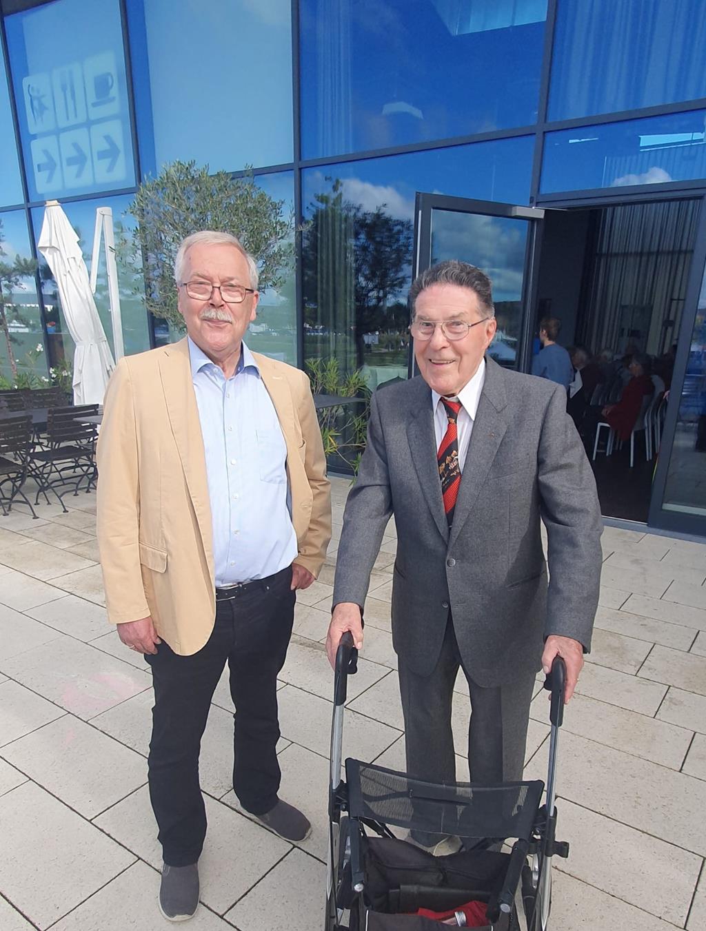 Zu den besonderen Gästen des Flughafenfest gehörten Harold Becker, der Enkelsohn des Luftfahrtpioniers Hanns Klemm, aus dessen privater Familiensammlung immer wieder neue Dokumente und Bilder über den Klemm-Flugzeugbau in das Stadtarchiv der Stadt Böblingen gelangen. Auch die Familie von Gottlob Seeger, dem Schwiegervater von Hanns Klemm und Mitbegründer des Klemm-Flugzeugbaus war auf der Veranstaltung zu Gast. Als einer der ältesten, noch lebenden Zeitzeugen nahm mit 98 Jahren Heinz Riediger (im Bild links mit Horst Paul Zöller, rechts mit Klemm-Enkel Harold Becker) an der Veranstaltung teil. Heinz Riediger ist der Sohn von Anton Riediger, der im März 1927 die erste Kundenmaschine vom Typ Daimler L20 des Klemm-Werks übernahm. Riediger beteiligte sich erfolgreich mit Klemm-Flugzeugen an zahlreichen Wettbewerbsveranstaltungen der 20/30er Jahre. Heinz Riediger hatte auch für unsere Klemm-Buchreiche zahlreiches Material seines Vaters zur Verfügung gestellt.