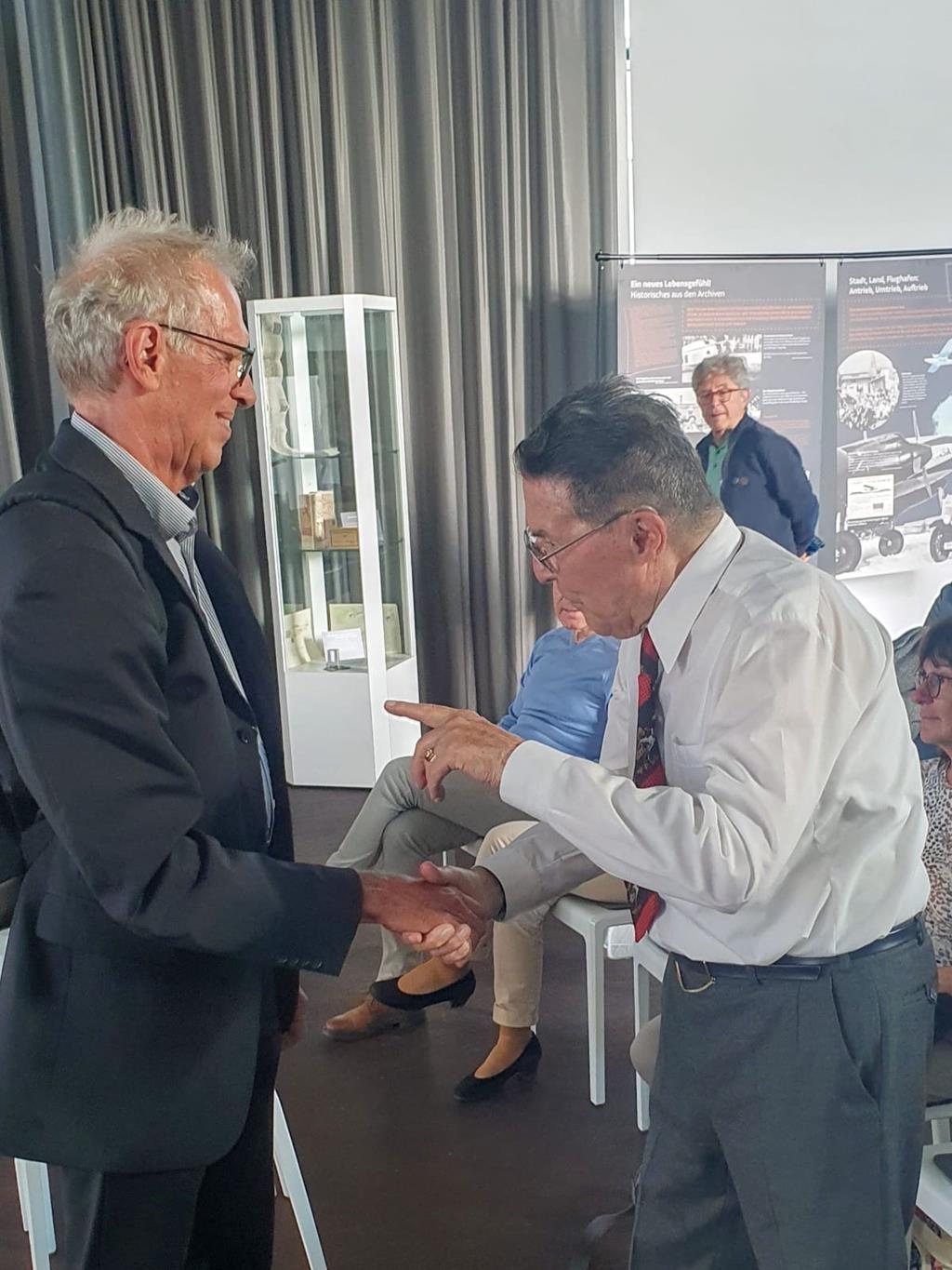 Einen schönen Abschluss fand der Geschichtssalon mit einer Podiumsdiskussion, in der wir die Traditionspflege der Fliegerstadt Böblingen mit den heutigen Hauptakteuren, insbesondere der AG Böblinger Flughafengeschichten, der Luftsport Gemeinschaft Hanns Klemm, Vertretern der Familie Klemm, der Motorworld-Ausstellung Stuttgart und dem Kulturamt der Stadt Böblingen erörtern konnten.